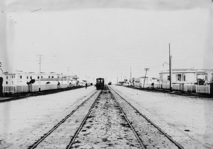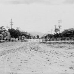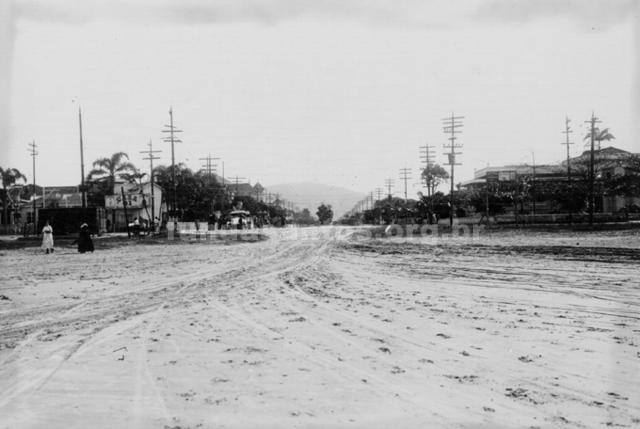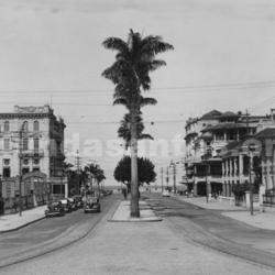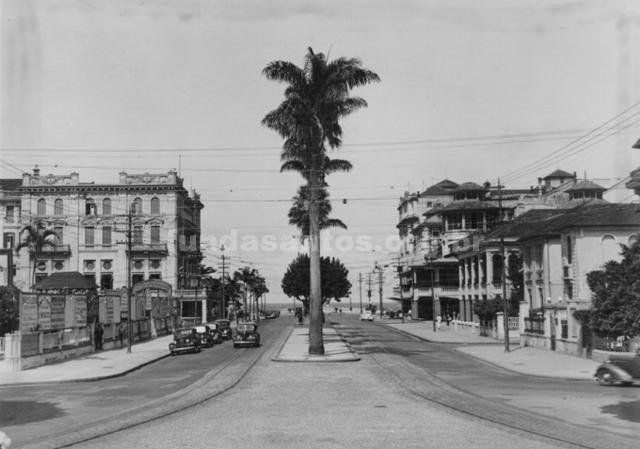 Av. Ana Costa, onde localiza-se o Parque Balneário, o Atlântico Hotel e as Palmeiras Imperiais ao centro.